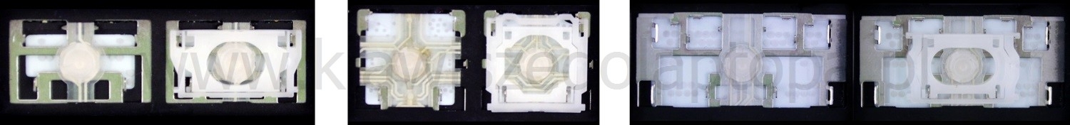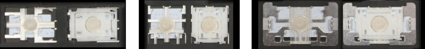 - Bei den meisten Tastaturen, die von außen identisch aussehen, wurden unterschiedliche Arten von Scharnieren unter den Tasten verwendet.