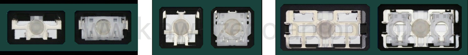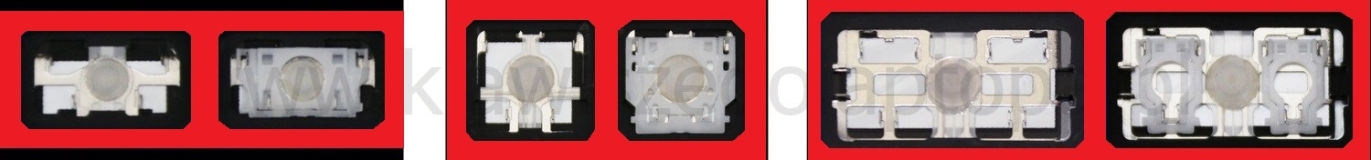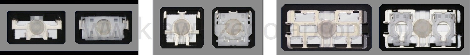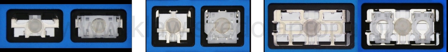 - Bei den meisten Tastaturen, die von außen identisch aussehen, wurden unterschiedliche Arten von Scharnieren unter den Tasten verwendet.