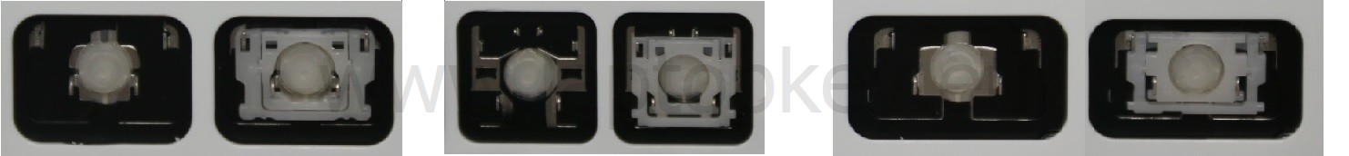- Bei den meisten Tastaturen, die von außen identisch aussehen, wurden unterschiedliche Arten von Scharnieren unter den Tasten verwendet.