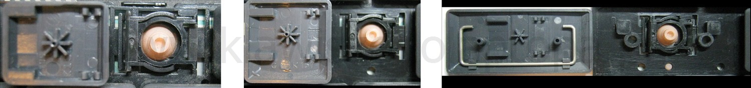 - Bei den meisten Tastaturen, die von außen identisch aussehen, wurden unterschiedliche Arten von Scharnieren unter den Tasten verwendet.