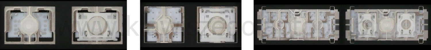 - Bei den meisten Tastaturen, die von außen identisch aussehen, wurden unterschiedliche Arten von Scharnieren unter den Tasten verwendet.