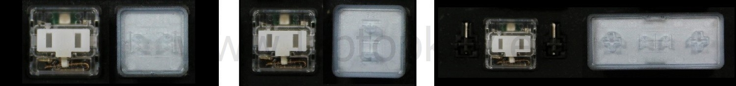 - Bei den meisten Tastaturen, die von außen identisch aussehen, wurden unterschiedliche Arten von Scharnieren unter den Tasten verwendet.