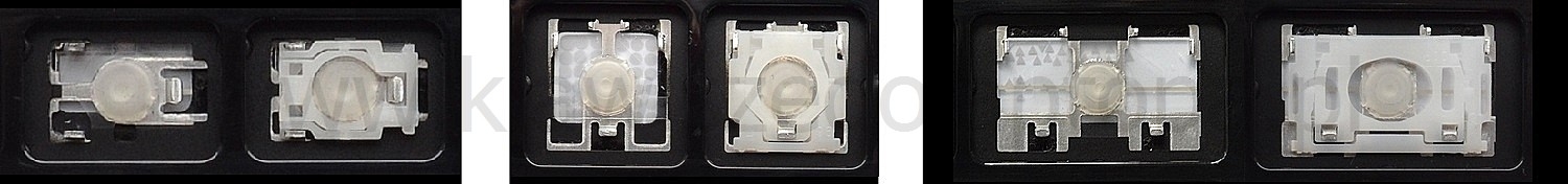 - Bei den meisten Tastaturen, die von außen identisch aussehen, wurden unterschiedliche Arten von Scharnieren unter den Tasten verwendet.