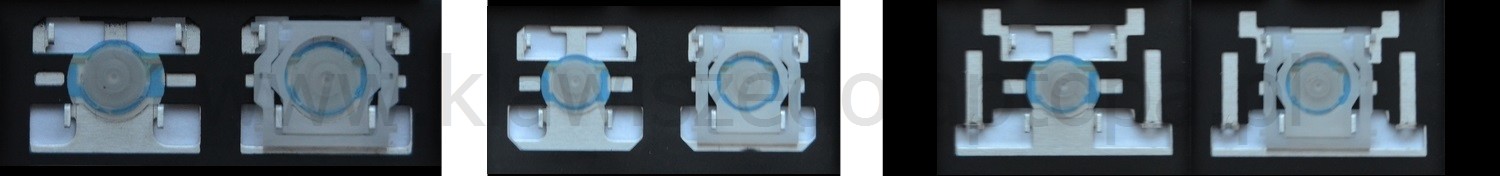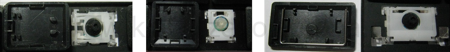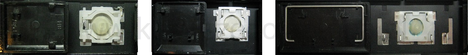 - Bei den meisten Tastaturen, die von außen identisch aussehen, wurden unterschiedliche Arten von Scharnieren unter den Tasten verwendet.
