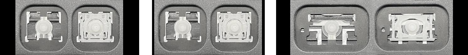 - Bei den meisten Tastaturen, die von außen identisch aussehen, wurden unterschiedliche Arten von Scharnieren unter den Tasten verwendet.