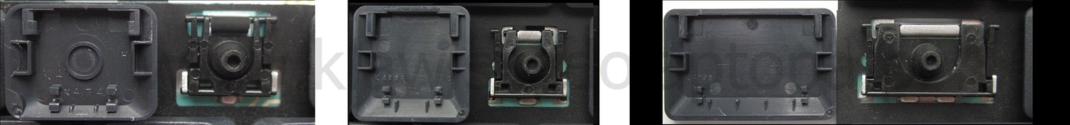 - Bei den meisten Tastaturen, die von außen identisch aussehen, wurden unterschiedliche Arten von Scharnieren unter den Tasten verwendet.