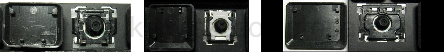 - Bei den meisten Tastaturen, die von außen identisch aussehen, wurden unterschiedliche Arten von Scharnieren unter den Tasten verwendet.