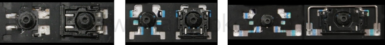 - Bei den meisten Tastaturen, die von außen identisch aussehen, wurden unterschiedliche Arten von Scharnieren unter den Tasten verwendet.