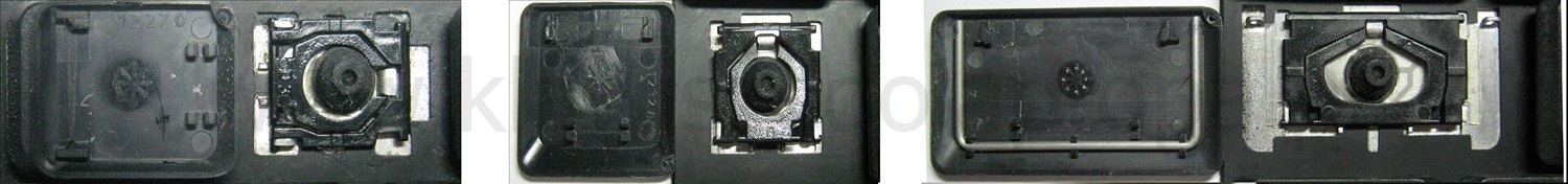 - Bei den meisten Tastaturen, die von außen identisch aussehen, wurden unterschiedliche Arten von Scharnieren unter den Tasten verwendet.