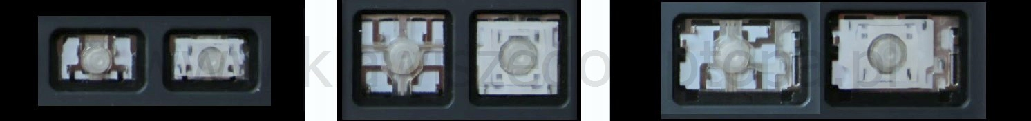 - Bei den meisten Tastaturen, die von außen identisch aussehen, wurden unterschiedliche Arten von Scharnieren unter den Tasten verwendet.