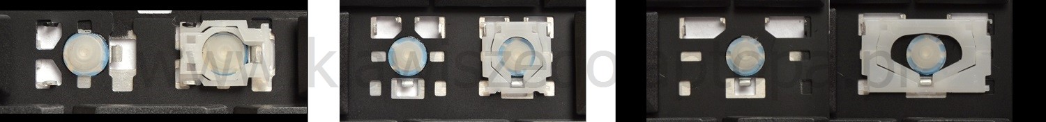 - Bei den meisten Tastaturen, die von außen identisch aussehen, wurden unterschiedliche Arten von Scharnieren unter den Tasten verwendet.