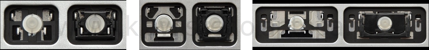 - Bei den meisten Tastaturen, die von außen identisch aussehen, wurden unterschiedliche Arten von Scharnieren unter den Tasten verwendet.