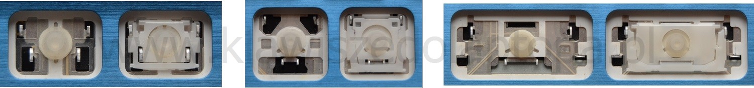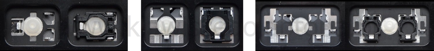 - Bei den meisten Tastaturen, die von außen identisch aussehen, wurden unterschiedliche Arten von Scharnieren unter den Tasten verwendet.