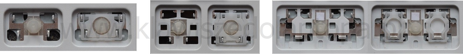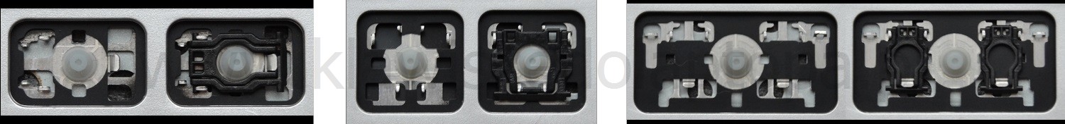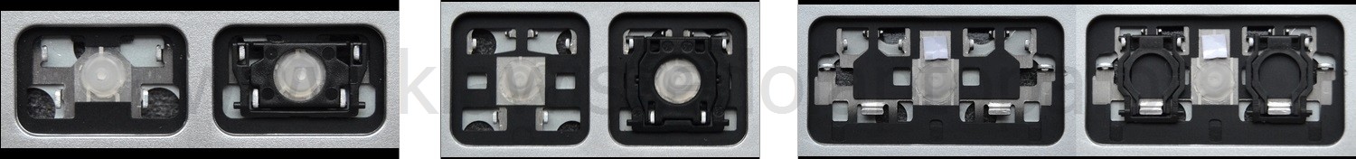 - Bei den meisten Tastaturen, die von außen identisch aussehen, wurden unterschiedliche Arten von Scharnieren unter den Tasten verwendet.