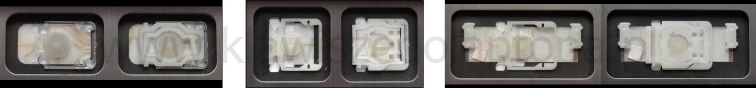 - Bei den meisten Tastaturen, die von außen identisch aussehen, wurden unterschiedliche Arten von Scharnieren unter den Tasten verwendet.