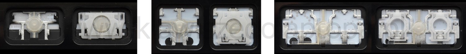 - Bei den meisten Tastaturen, die von außen identisch aussehen, wurden unterschiedliche Arten von Scharnieren unter den Tasten verwendet.
