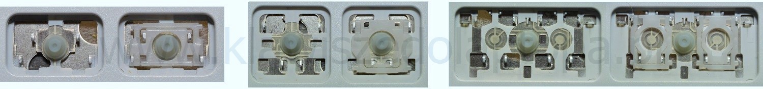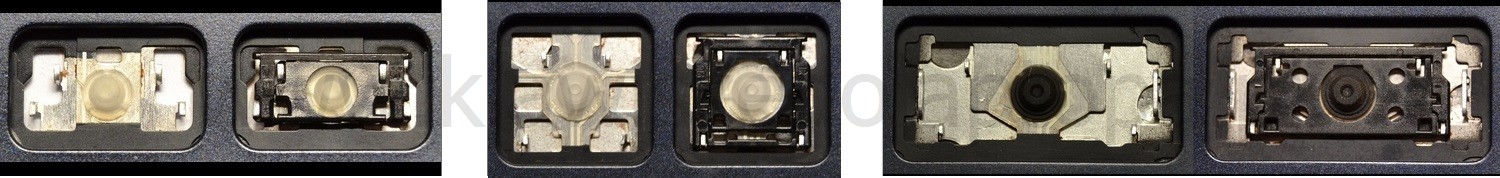 - Bei den meisten Tastaturen, die von außen identisch aussehen, wurden unterschiedliche Arten von Scharnieren unter den Tasten verwendet.