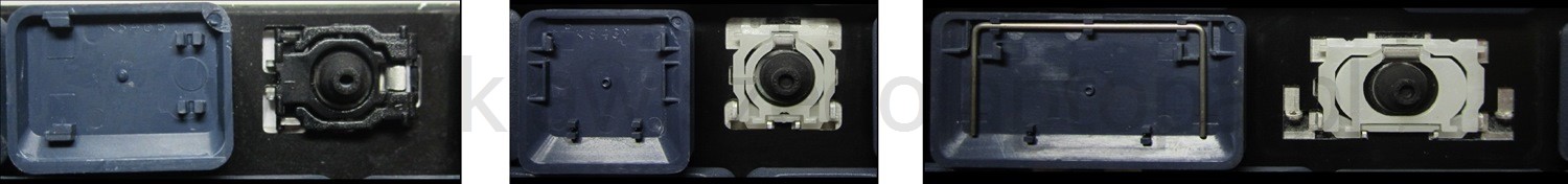- Bei den meisten Tastaturen, die von außen identisch aussehen, wurden unterschiedliche Arten von Scharnieren unter den Tasten verwendet.