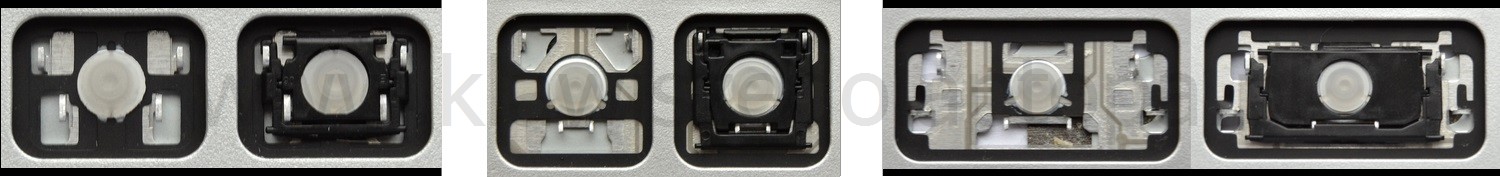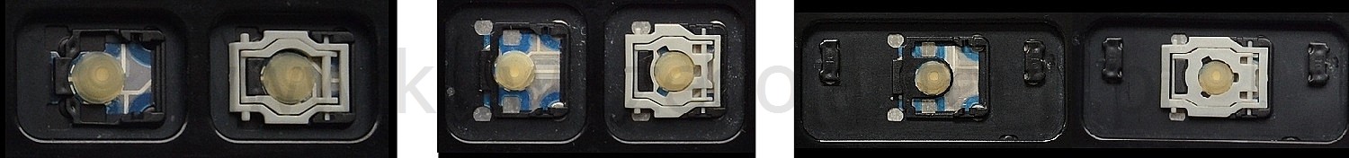 - Bei den meisten Tastaturen, die von außen identisch aussehen, wurden unterschiedliche Arten von Scharnieren unter den Tasten verwendet.