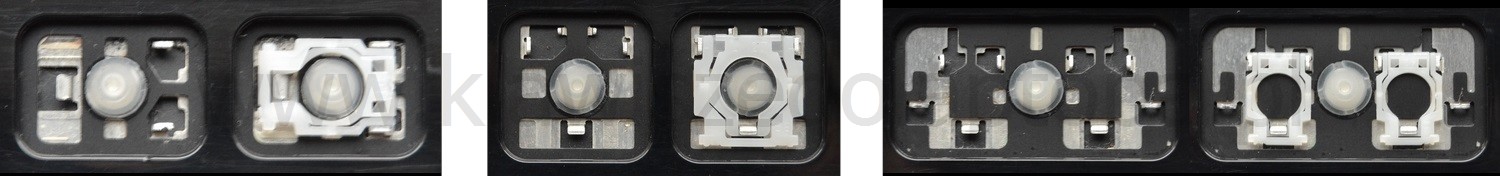 - Bei den meisten Tastaturen, die von außen identisch aussehen, wurden unterschiedliche Arten von Scharnieren unter den Tasten verwendet.