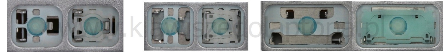 - Bei den meisten Tastaturen, die von außen identisch aussehen, wurden unterschiedliche Arten von Scharnieren unter den Tasten verwendet.