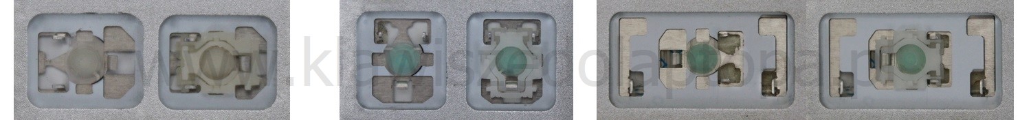 - Bei den meisten Tastaturen, die von außen identisch aussehen, wurden unterschiedliche Arten von Scharnieren unter den Tasten verwendet.