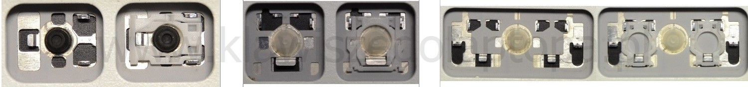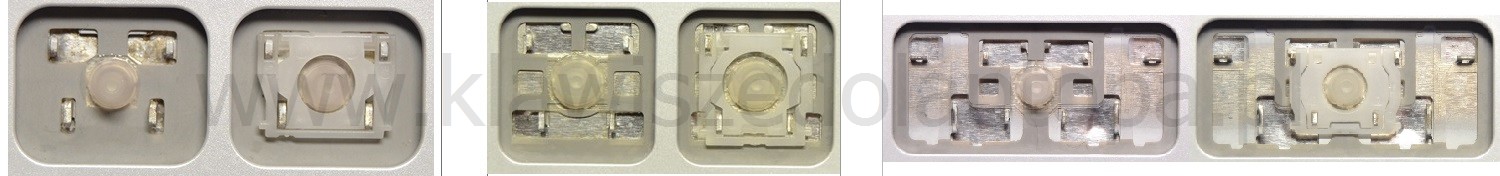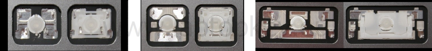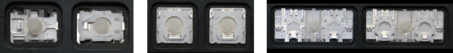 - Bei den meisten Tastaturen, die von außen identisch aussehen, wurden unterschiedliche Arten von Scharnieren unter den Tasten verwendet.