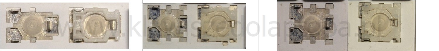 - Bei den meisten Tastaturen, die von außen identisch aussehen, wurden unterschiedliche Arten von Scharnieren unter den Tasten verwendet.