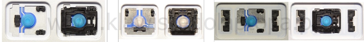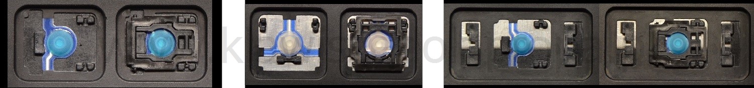 - Bei den meisten Tastaturen, die von außen identisch aussehen, wurden unterschiedliche Arten von Scharnieren unter den Tasten verwendet.