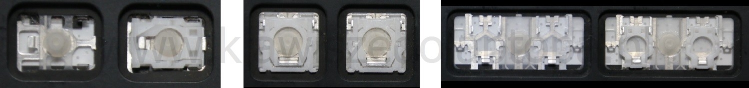- Bei den meisten Tastaturen, die von außen identisch aussehen, wurden unterschiedliche Arten von Scharnieren unter den Tasten verwendet.