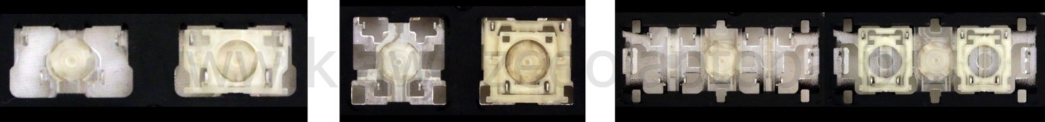 - Bei den meisten Tastaturen, die von außen identisch aussehen, wurden unterschiedliche Arten von Scharnieren unter den Tasten verwendet.