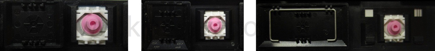 - Bei den meisten Tastaturen, die von außen identisch aussehen, wurden unterschiedliche Arten von Scharnieren unter den Tasten verwendet.