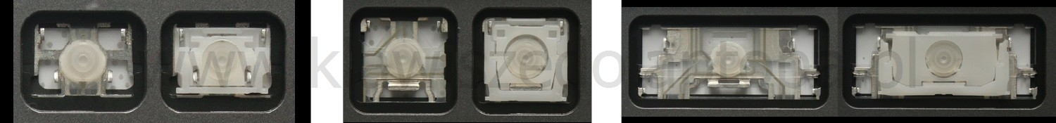 - Bei den meisten Tastaturen, die von außen identisch aussehen, wurden unterschiedliche Arten von Scharnieren unter den Tasten verwendet.