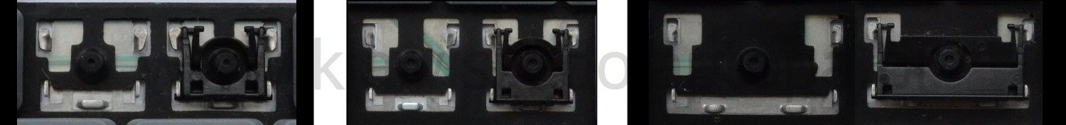 - Bei den meisten Tastaturen, die von außen identisch aussehen, wurden unterschiedliche Arten von Scharnieren unter den Tasten verwendet.