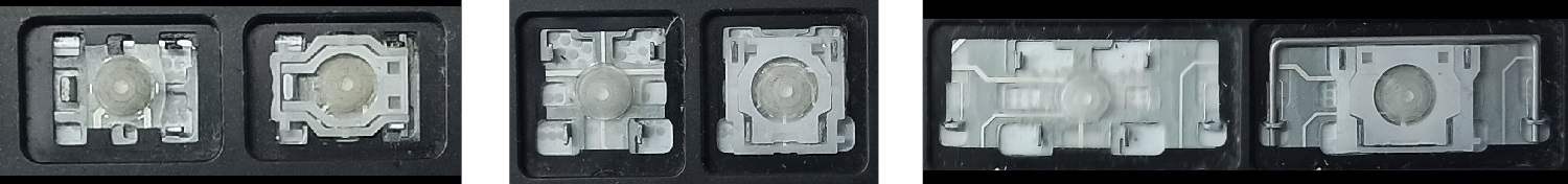 - Bei den meisten Tastaturen, die von außen identisch aussehen, wurden unterschiedliche Arten von Scharnieren unter den Tasten verwendet.