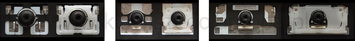 - Bei den meisten Tastaturen, die von außen identisch aussehen, wurden unterschiedliche Arten von Scharnieren unter den Tasten verwendet.