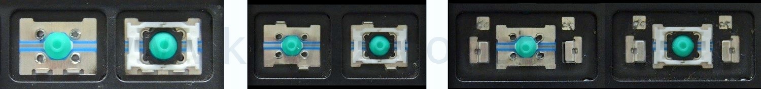 - Bei den meisten Tastaturen, die von außen identisch aussehen, wurden unterschiedliche Arten von Scharnieren unter den Tasten verwendet.