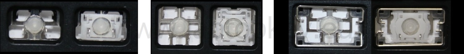 - Bei den meisten Tastaturen, die von außen identisch aussehen, wurden unterschiedliche Arten von Scharnieren unter den Tasten verwendet.