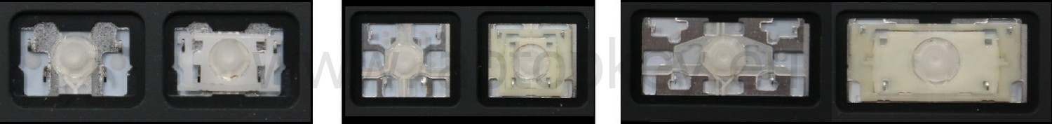 - Bei den meisten Tastaturen, die von außen identisch aussehen, wurden unterschiedliche Arten von Scharnieren unter den Tasten verwendet.