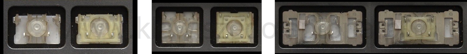 - Bei den meisten Tastaturen, die von außen identisch aussehen, wurden unterschiedliche Arten von Scharnieren unter den Tasten verwendet.