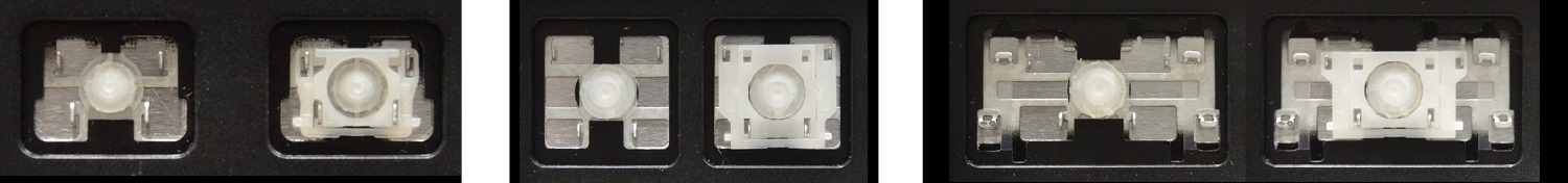 - Bei den meisten Tastaturen, die von außen identisch aussehen, wurden unterschiedliche Arten von Scharnieren unter den Tasten verwendet.