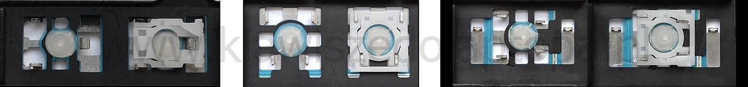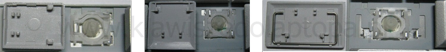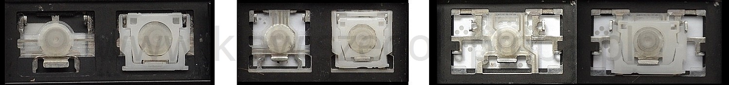 - Bei den meisten Tastaturen, die von außen identisch aussehen, wurden unterschiedliche Arten von Scharnieren unter den Tasten verwendet.