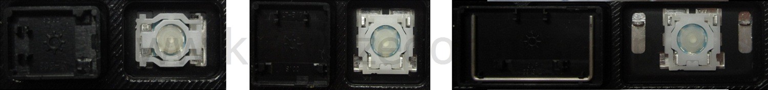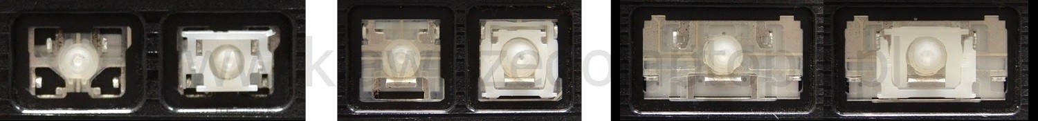 - Bei den meisten Tastaturen, die von außen identisch aussehen, wurden unterschiedliche Arten von Scharnieren unter den Tasten verwendet.
