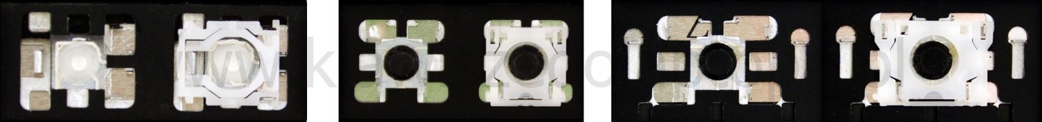 - Bei den meisten Tastaturen, die von außen identisch aussehen, wurden unterschiedliche Arten von Scharnieren unter den Tasten verwendet.
