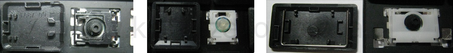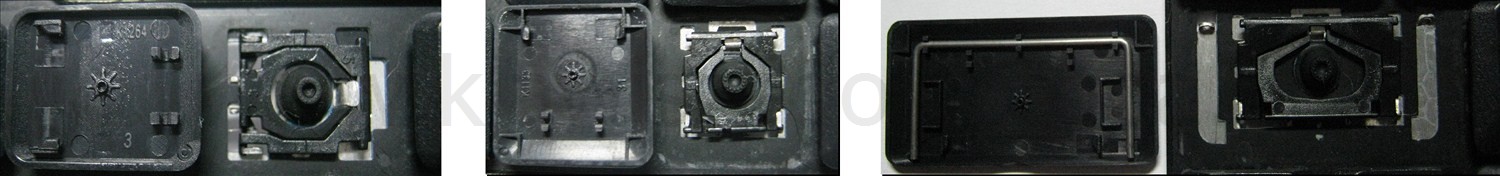 - Bei den meisten Tastaturen, die von außen identisch aussehen, wurden unterschiedliche Arten von Scharnieren unter den Tasten verwendet.