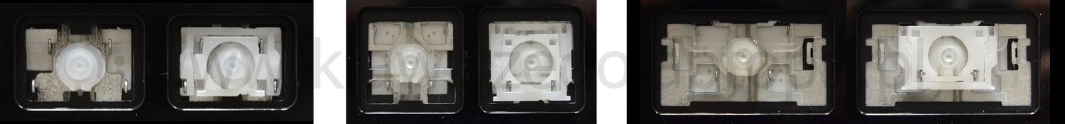 - Bei den meisten Tastaturen, die von außen identisch aussehen, wurden unterschiedliche Arten von Scharnieren unter den Tasten verwendet.