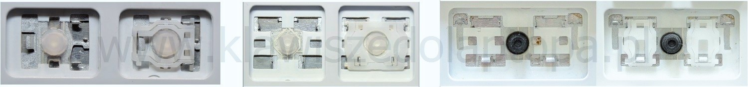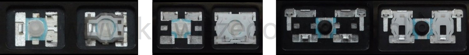 - Bei den meisten Tastaturen, die von außen identisch aussehen, wurden unterschiedliche Arten von Scharnieren unter den Tasten verwendet.