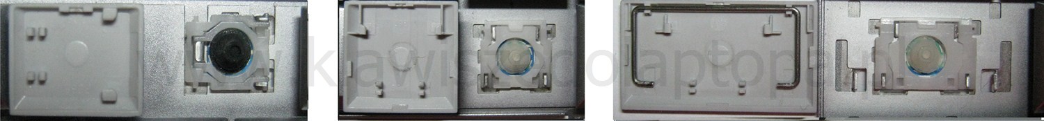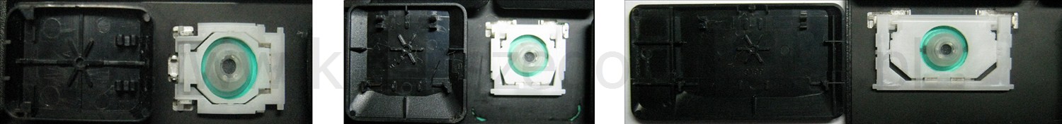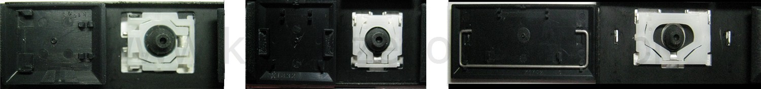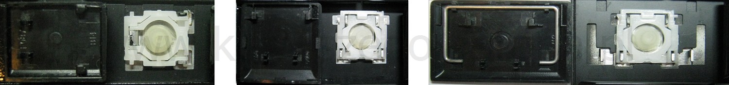 - Bei den meisten Tastaturen, die von außen identisch aussehen, wurden unterschiedliche Arten von Scharnieren unter den Tasten verwendet.