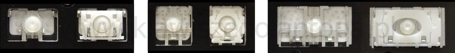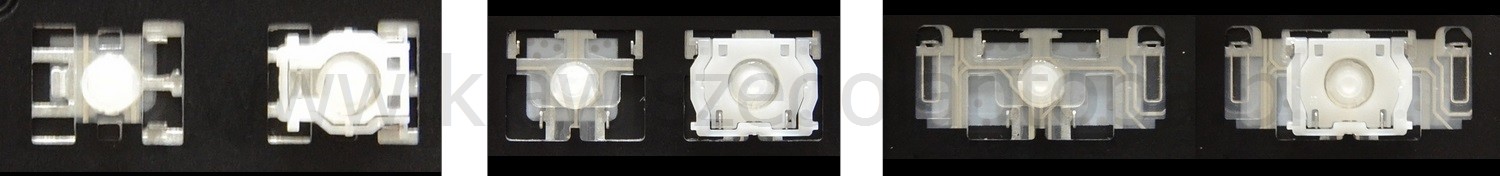 - Bei den meisten Tastaturen, die von außen identisch aussehen, wurden unterschiedliche Arten von Scharnieren unter den Tasten verwendet.