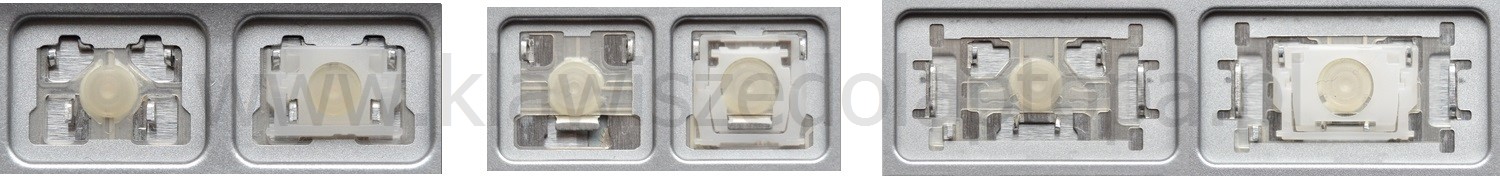 - Bei den meisten Tastaturen, die von außen identisch aussehen, wurden unterschiedliche Arten von Scharnieren unter den Tasten verwendet.